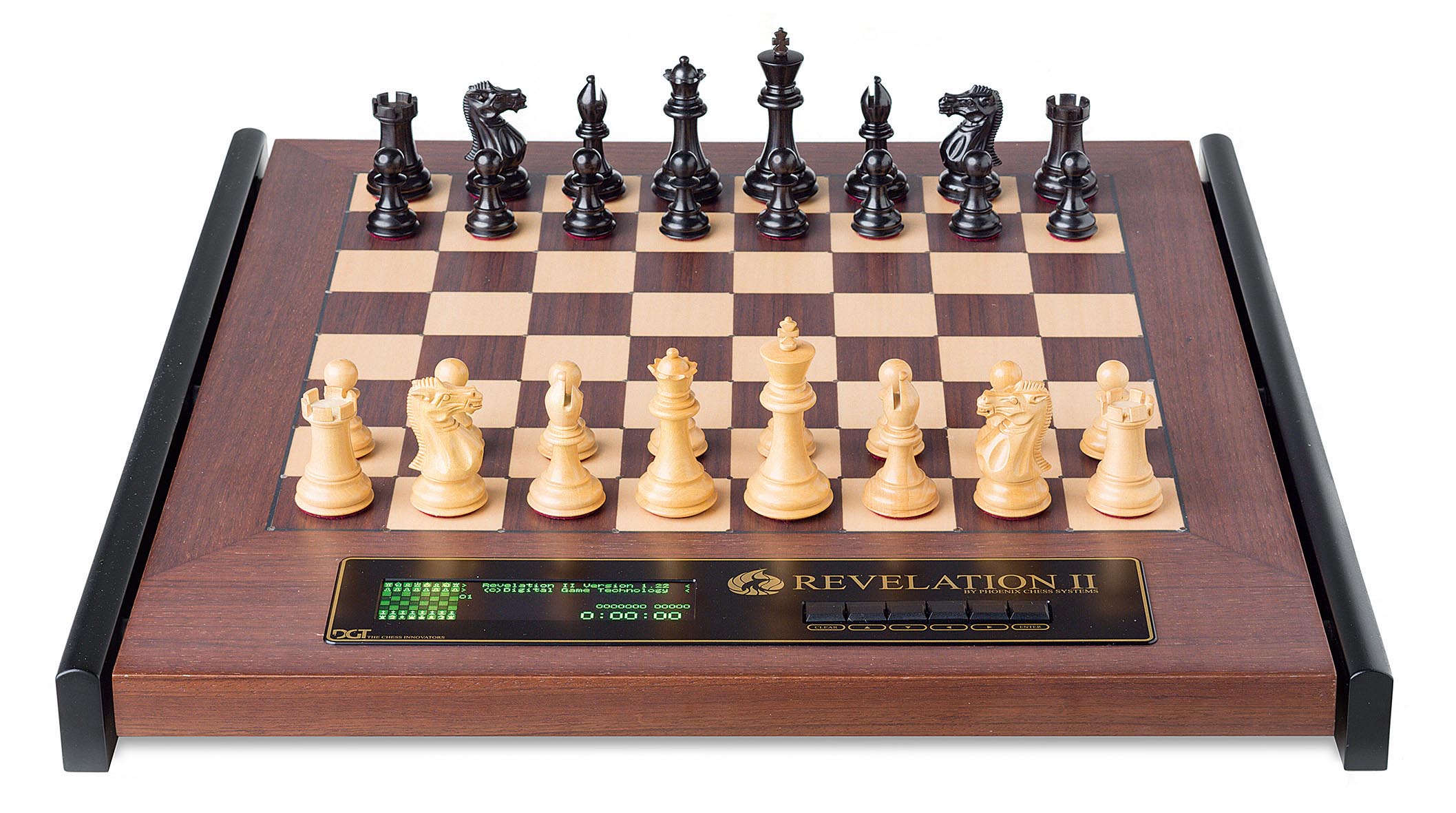 Шахматный компьютер нового поколения Revelation II представляет собой идеальное сочетание роскошной деревянной шахматной доски с интегрированной шахматной компьютерной системой, разработаной в Нидерландах Digital Game Technology и Phoenix Chess Systems.